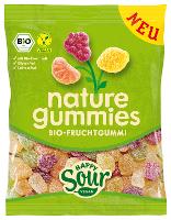 Zucker*; Glukosesirup*; Maisstärke*; 6% Apfelsaft aus Apfelsaftkonzentrat*; Säuerungsmittel: Citronensäure; Säureregulatoren: Calciumcitrate, Natriumcitrate; Geliermittel: Pektin; natürliches Schwarze Johannisbeere-, Apfel-, Kirsch-, Zitronen-, Orangen-, Grapefruit-Aroma; färbende Lebensmittel (Karotte*, Kürbis*, Holunder*, Apfel*, Saflor*, Spirulina*, Karamellzuckersirup*).| Energie | Fett | gesättigte Fettsäuren | Kohlenhydrate | Zucker | Eiweiss | Salz |