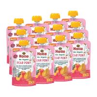 Birne** 67,5%, Pfirsich** 20%, Himbeere* 10%, DINKELWEIZEN** 2,5%.| Energie | Fett | gesättigte Fettsäuren | Kohlenhydrate | Zucker | Eiweiss | Salz |