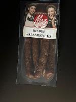 BIO-Rindfleisch*, Steinsalz, BIO-Gewürze* (enthalten SELLERIE*), BIO-Dextrose*, BIO-Trockenglucosesirup*, BIO-Kümmel*, BIO-Knoblauch*, essbare Hülle aus Rinderkollagen, BuchenholzrauchZur Herstellung von 100g BIO Salami Sticks Rind wurden 159g Rindfleisch* verwendet.*aus ökologischer ErzeugungEin leichter, weißlicher Belag auf der Oberfläche kann mit verzehrt werden, es handelt sich um Salzkristalle.| Energie | Fett | gesättigte Fettsäuren | Kohlenhydrate | Zucker | Eiweiss | Salz |