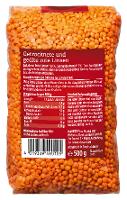 Rote Linsen 99%*, Sonnenblumenöl 1%*| Energie | Fett | gesättigte Fettsäuren | Kohlenhydrate | Zucker | Ballaststoffe | Eiweiss | Salz |