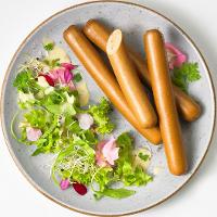 Trinkwasser, Sonnenblumenöl*, Zwiebeln*, 7,8% WEIZENEIWEISS*, 5,5% EIEIWEIß* getrocknet, Gewürze* (Ingwer*, Knoblauch*, Koriander*, Kümmel*, Pfeffer*, Muskat*, Curcuma*), Meersalz, Tomatenmark*, WEIZENVOLLKORN* geschrotet, Verdickungsmittel: Guarkernmehl*; Paprika*, Porree*, Dextrose*, Steinsalz, Maltodextrin*, Karotten*, Maisstärke*, Kräuter* (Liebstöckel*, Petersilie*), Buchenholzrauch.| Energie | Fett | gesättigte Fettsäuren | Kohlenhydrate | Zucker | Ballaststoffe | Eiweiss | Salz |