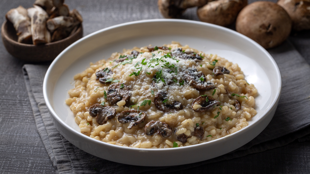 Zum Schluss die beiseitegestellten Pilze, frisch geriebenen Parmesan und fein gehackte Petersilie unter das fertige Risotto heben. Alles gut vermengen und das Gericht zugedeckt etwa 10 Minuten ziehen lassen, damit sich die Aromen verbinden. Anschließend heiß servieren und genießen.